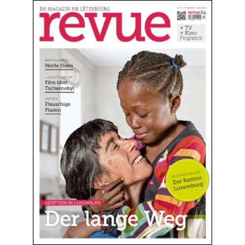 revue über Adoptionen und die in Luxemburg damit verbundenen Prozeduren. Lesen Sie außerdem einen Hintergrundbericht über Waffenhandel, einen Artikel über Pol Cruchtens neuen Film „La Supplication“, einen Beitrag über die „Patrouille des glaciers“, einen Bericht über das Modelabel Vol(t)age und wir geben eine Reihe Tipps, wie man Kinderschuhe richtig kauft. In einer 20-seitigen Beilage dreht sich alles um den Kanton Luxemburg. Wie jede Woche gibt es selbstverständlich auch das Neueste aus TV und Kino.