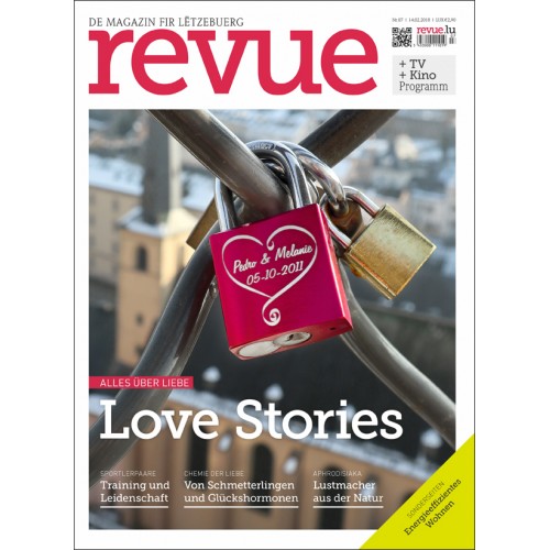 Alles Liebe – zum Valentinstag dreht sich bei der Revue alles um die großen Gefühle. In dieser Ausgabe werden Paare vorgestellt, die schon mehr als 50 Jahre verheiratet sind, aber auch Singles, die Singles bleiben wollen. Dazu stellte sich die revue die Frage, was man bei Liebesbeziehungen am Arbeitsplatz berücksichtigen muss. Gezeigt, was sich bei der Liebe alles im Körper abspielt und welche stimulierende Wirkung natürliche Lebensmittel haben können.